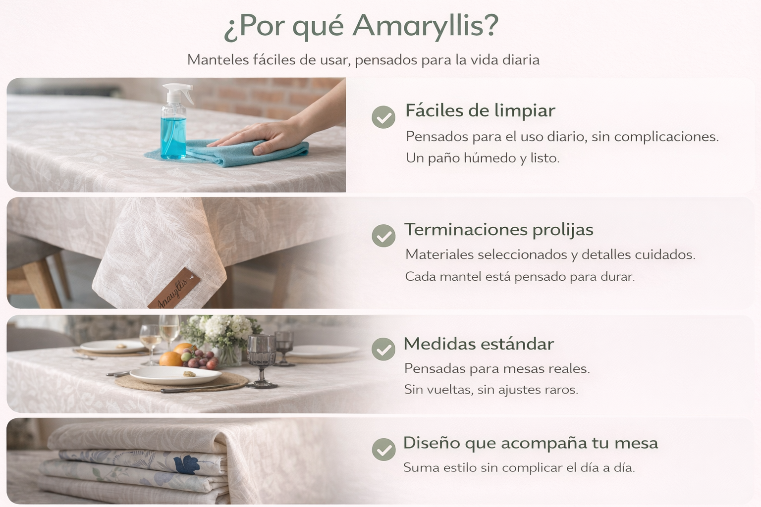 Seleccioná el tamaño recomendado según tu mesa. Usamos medidas estándar pensadas para mesas reales